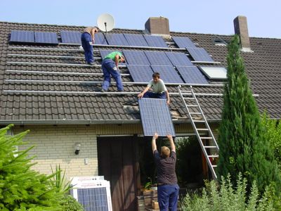 Am Freitag, 22. Juni 2007 ist meine Photovoltaikanlage in Betrieb gegangen. ->4,5 kW, 36 qm Dachfläche Süd-Ost, Ertrag ca. 3900 kWh pro Jahr (1900 Euro) Kosten: 24.395,00 Euro brutto (20.500 Euro netto) Finanzierung: Über Kredit (nur das rechnet sich!) von SPAKA Weserbergland Amortisation: ca. 15 Jahre bei einer geplanten Laufzeit von 20 Jahren |